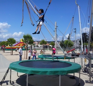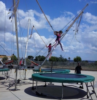 Grande diversão, com 4 trampolins, onde os participantes podem dar salto até 7 metros de altura. Para total segurança, os participantes estão presos com elásticos num arnês. Lotação: 4 participantes em simultâneo. |