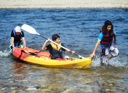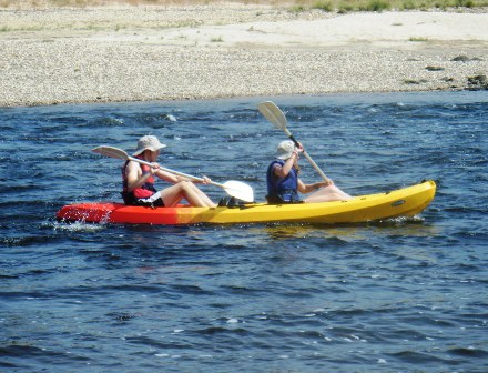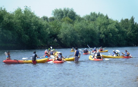 Damos as primeiras remadas num rio de grande caudal, calmo, largo, e muito fácil. Mais à frente, e numa curva à esquerda do rio, encontramos um pequeno rápido. Nada que assuste. Todos passamos com muita facilidade, este, e os seguintes.